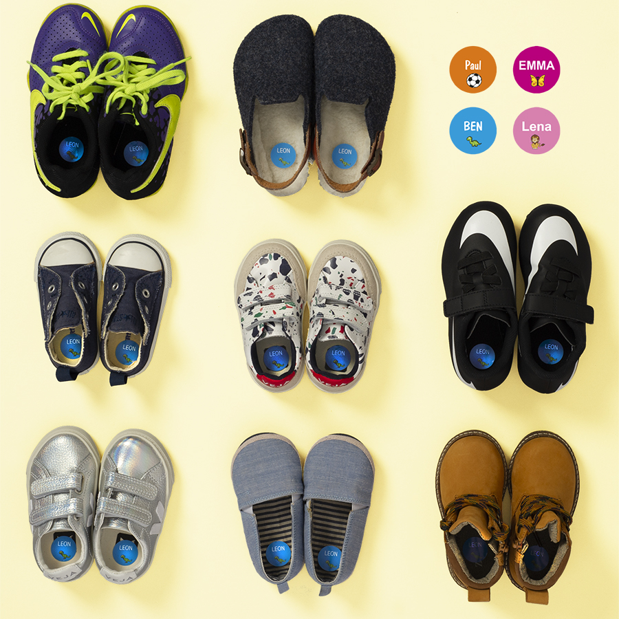 Schuhe markieren war noch nie so einfach. Mit den Namensaufklebern für Schuhe von Stickerella bringst du Stil und Struktur in den Familienalltag.